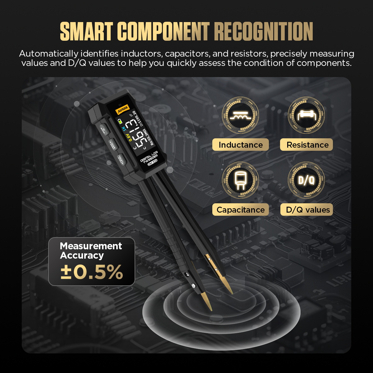 The AUTOOL DM103 automatically identifies the component type, eliminating the need for frequent gear shifting. With the automatic mode selected, it instantly measures resistance, capacitance, and inductance, helping you easily complete batch component testing and improve repair efficiency.