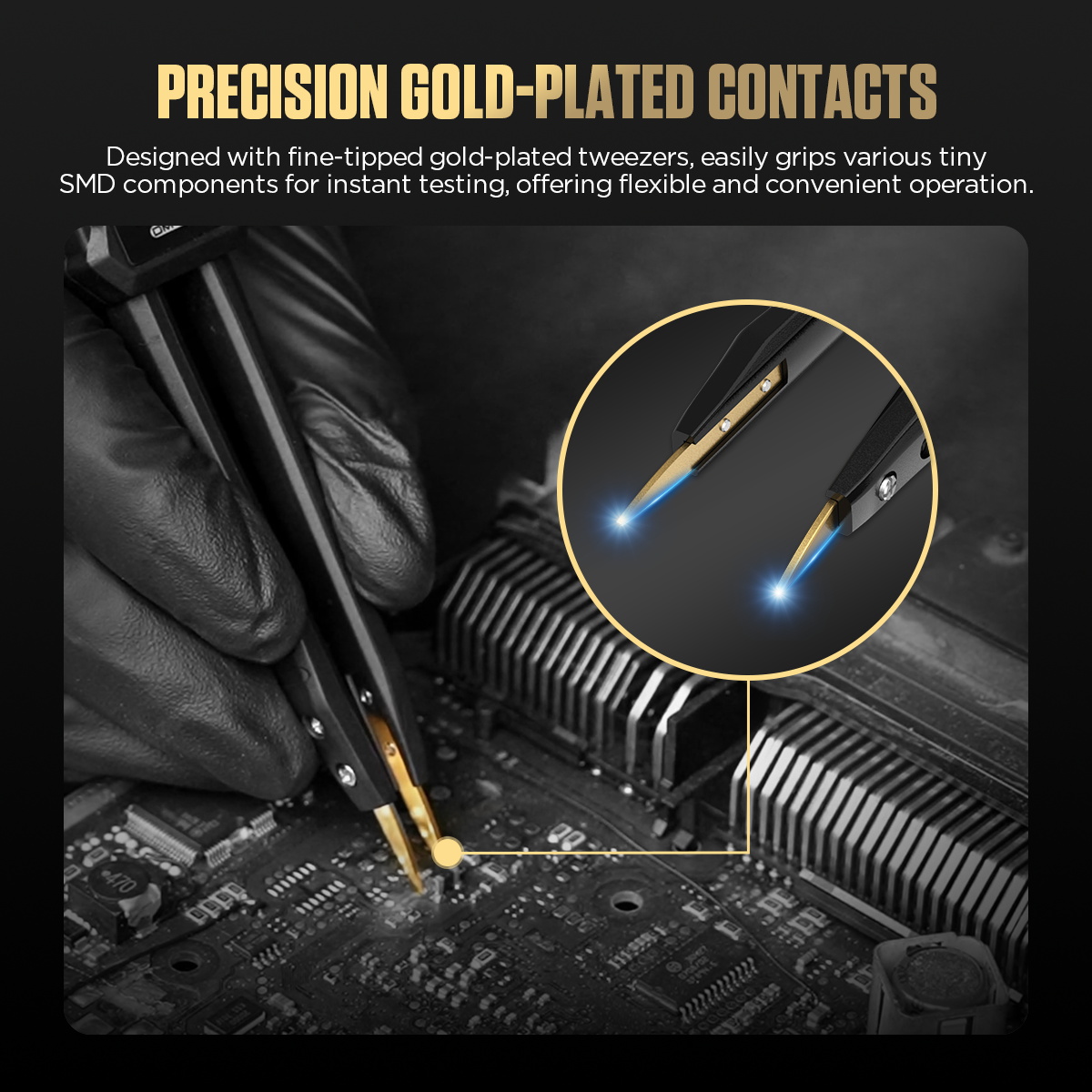 The AUTOOL DM103 uses high-precision, fine contact probes with sensitive testing contacts, enabling precise clamping of small SMD electronic components and meeting the demands of high-density circuit board testing.