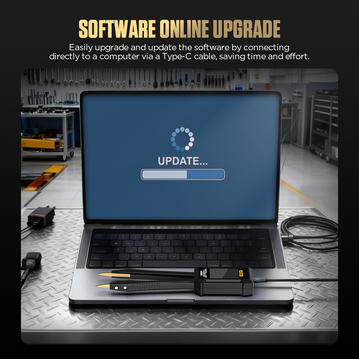 The AUTOOL DM103 supports software upgrades and feature updates via a Type-C data cable connected to a computer, ensuring the device always maintains optimal testing performance.