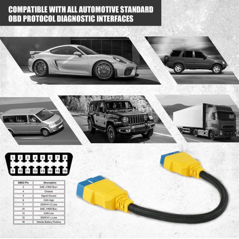 AUTOOL 36CM Car OBD2 Reinforced Nylon Extension Cord Male to Female Cable for Launch Easydiag/THINKDIAG/THINKDRIVER/ELM327 Cable