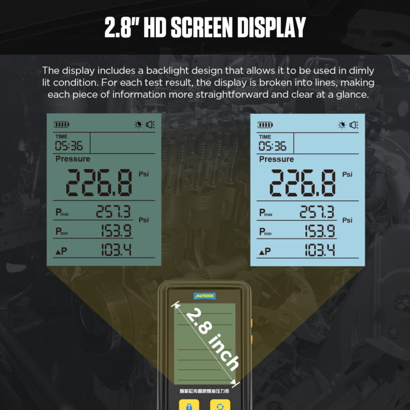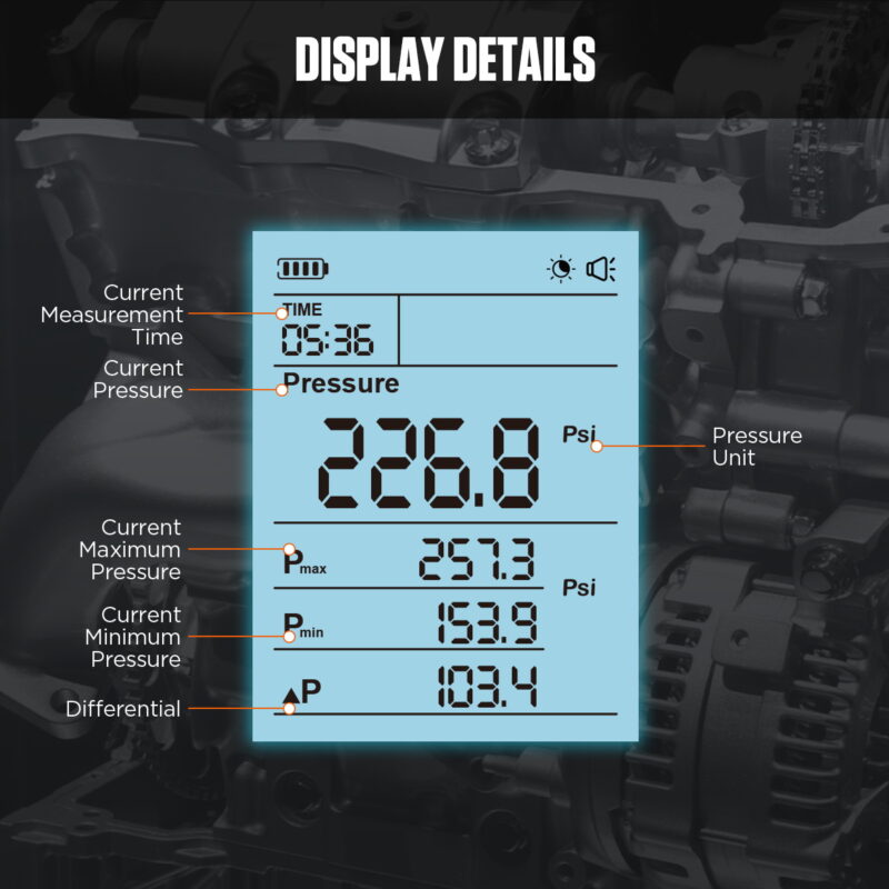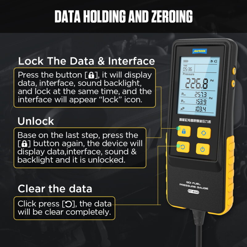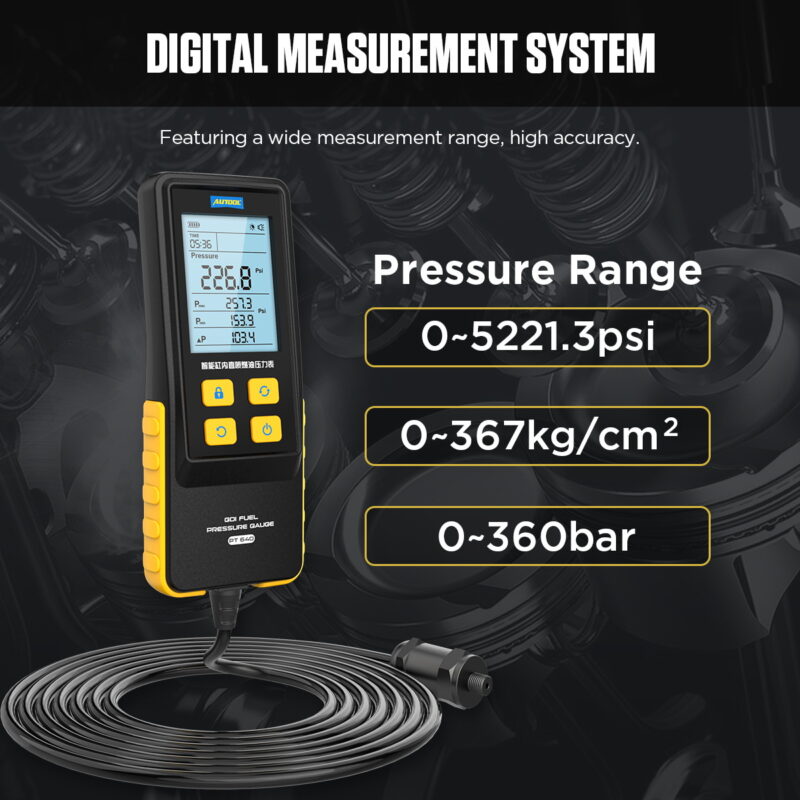 AUTOOL PT640 GDI Fuel Pressure Gauge 0-360Bar Digital Measurement Pressure Gauge