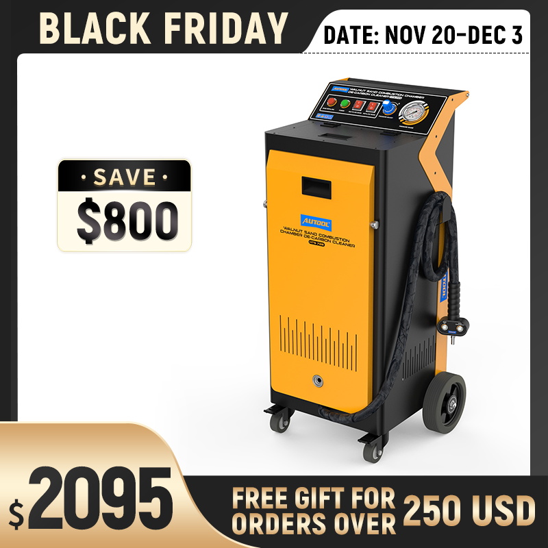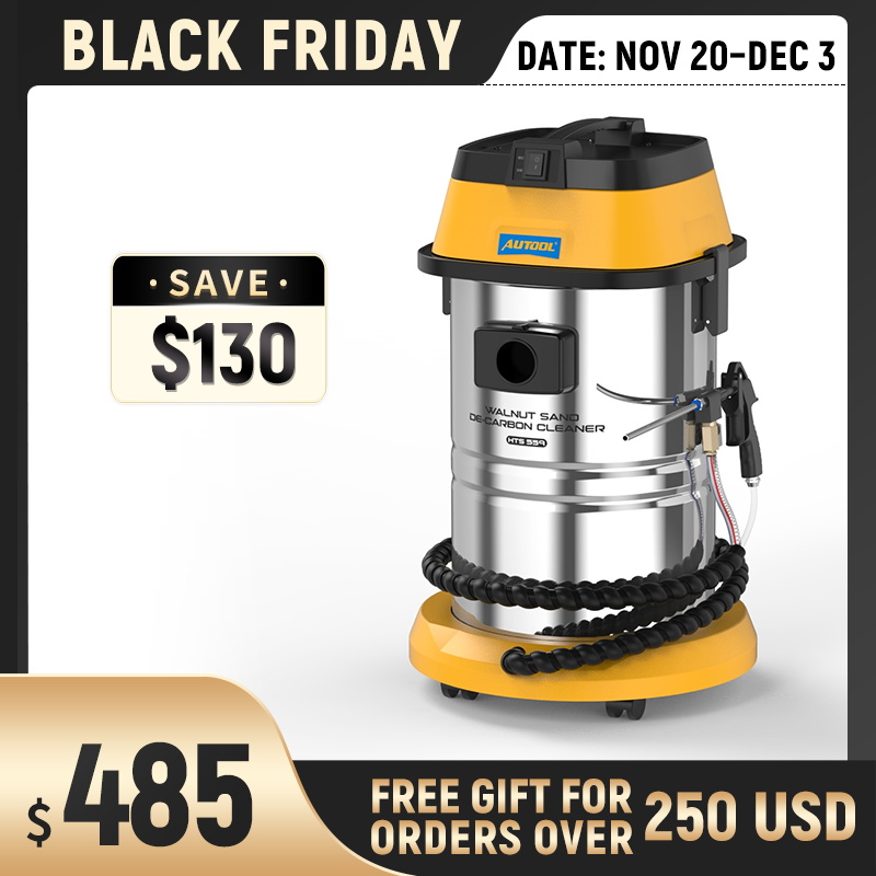 The AUTOOL HTS series sand blasting machine removes carbon deposits from the intake system, valves, cylinders, and other engine parts. It sprays walnut shell particles under high pressure to clean carbon buildup, especially in intake valves, exhaust valves, and combustion chambers.