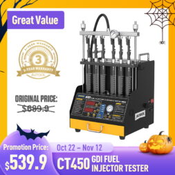 The CT series also tests injectors by simulating engine speed, showing their working status, and indicating if they need replacing.