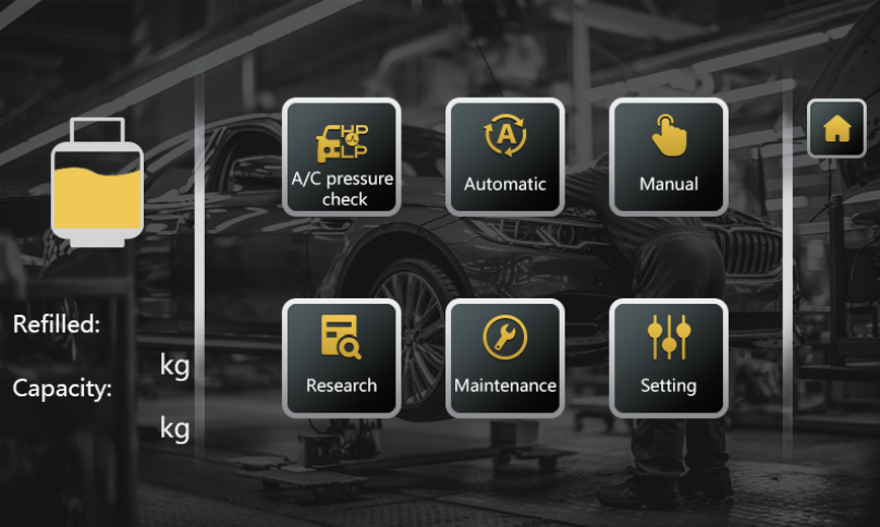 - 7-inch intelligent control panel: The 7-inch color touch screen display on the Freon Recovery Machine provides an easy-to-use interface, improving workflow visibility and efficiency. It also features three separate dashboards and touch buttons, enhancing the user experience.