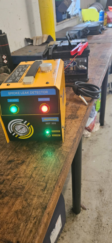 Automotive Smoke Machine Leak Detector SDT205 is an automotive smoke leak detector with a visual pressure gauge that easily detects leaks in pipes. It has dual test modes: air mode and Smoke mode.