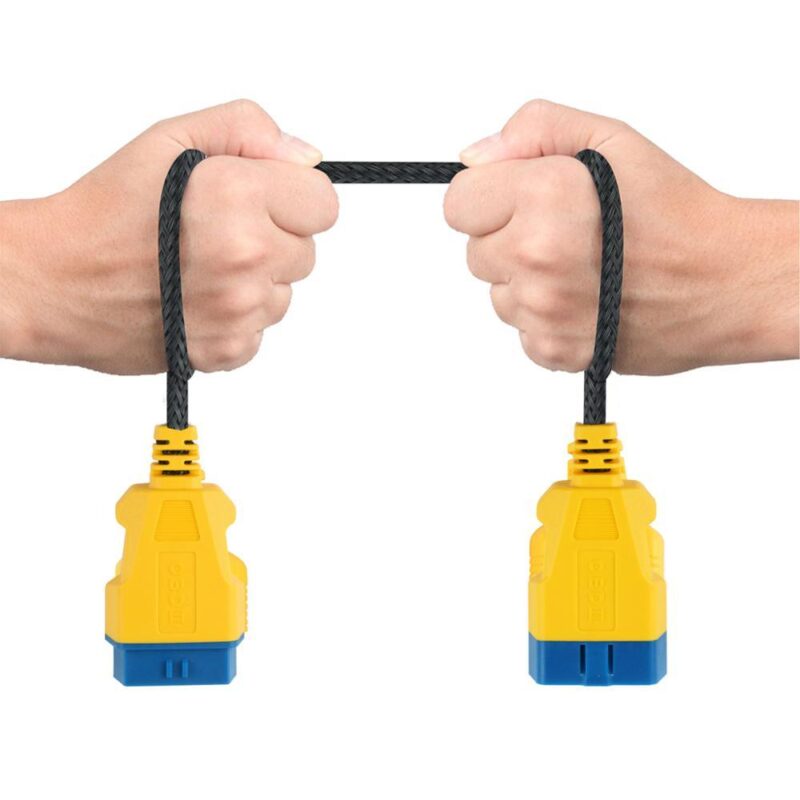 For AUTOOL OBD enhanced cable series, we apply full-automatic technology, use high quality pure copper core and plastic with TPE materials also covered with Protecting Nylon Braided Sleeves. It takes 8 inspection steps from injection to molding to ensure the cable can be plugged over 10,000 times.