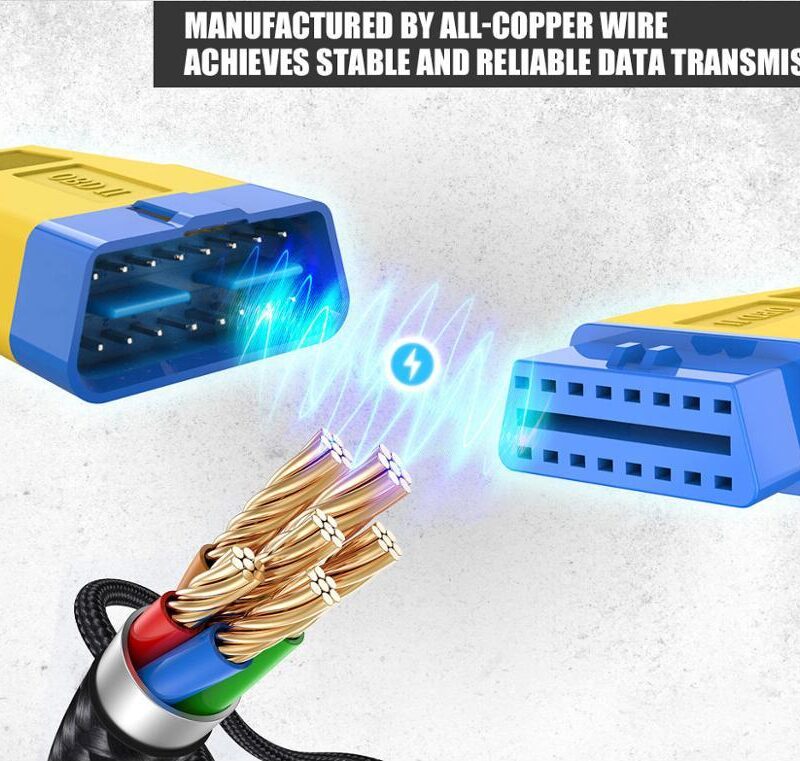 For AUTOOL OBD enhanced cable series, we apply full-automatic technology, use high quality pure copper core and plastic with TPE materials also covered with Protecting Nylon Braided Sleeves. It takes 8 inspection steps from injection to molding to ensure the cable can be plugged over 10,000 times.