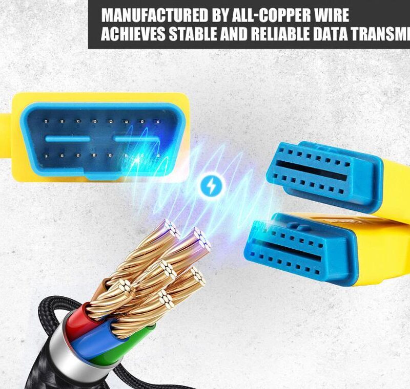 For AUTOOL OBD enhanced cable series, we apply full-automatic technology, use high quality pure copper core and plastic with TPE materials also covered with Protecting Nylon Braided Sleeves. It takes 8 inspection steps from injection to molding to ensure the cable can be plugged over 10,000 times.