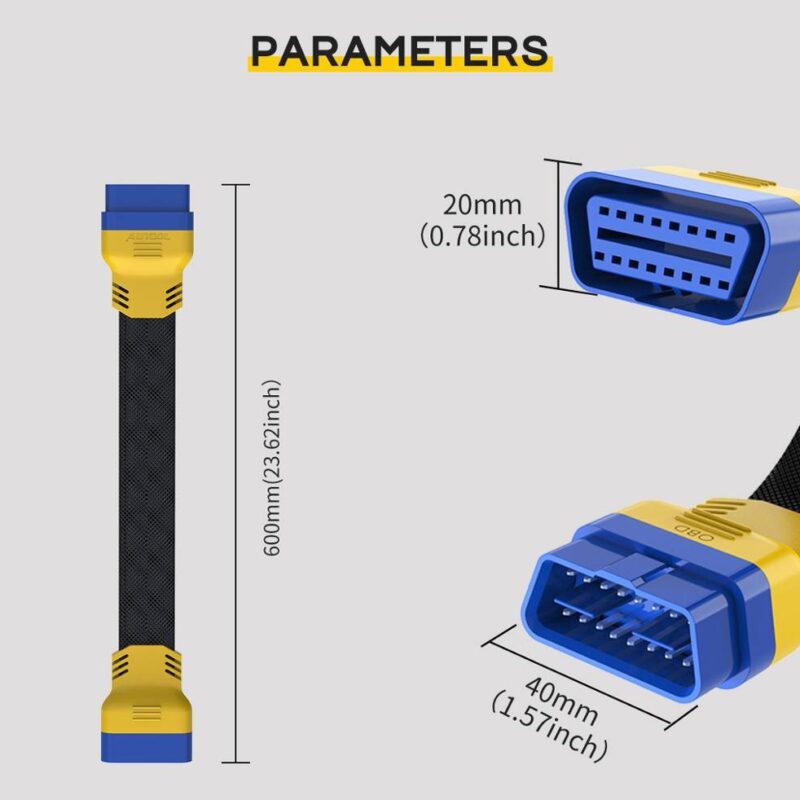 AUTOOL 60CM Car 16 Pin OBDII Enhanced Extension Male to Female Cable for Launch Easydiag/THINKDIAG/THINKDRIVER/ELM327 OBD2 Cable