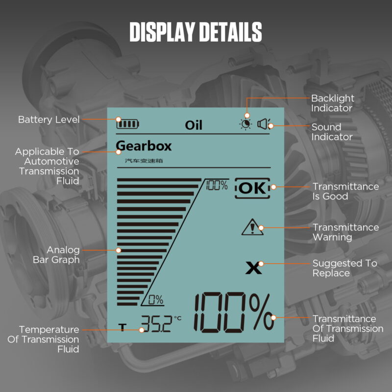 The AS505 reacts to the degree of impurities in the oil through the refractive index, so that the degree of turbidity and dirtiness of the transmission fluid can be measured! The product is perfect for us to test the transmission oil!