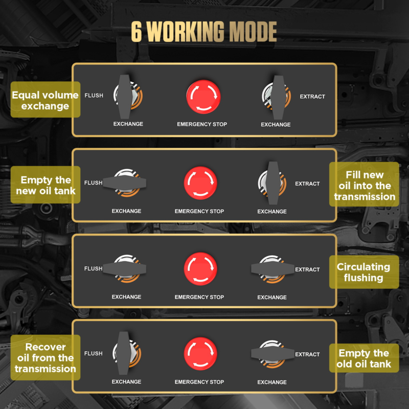 - Quick Change Of ATF: The cleaning and oil change of automatic transmission can be completed in 20 minutes, and the change efficiency can approach 100%