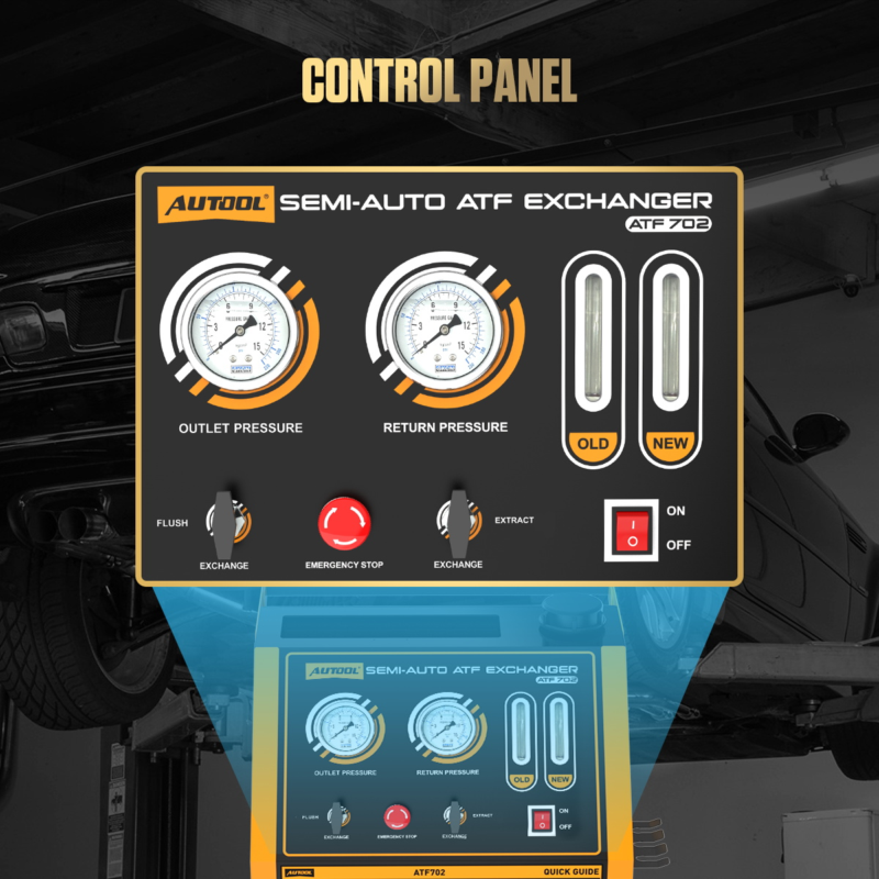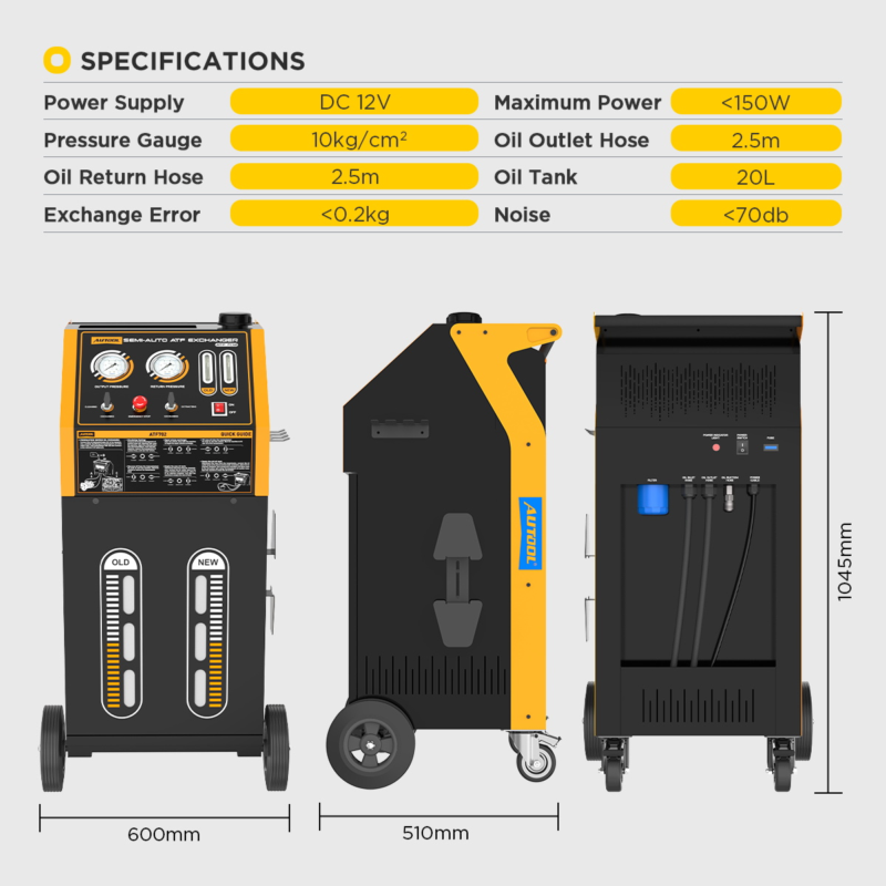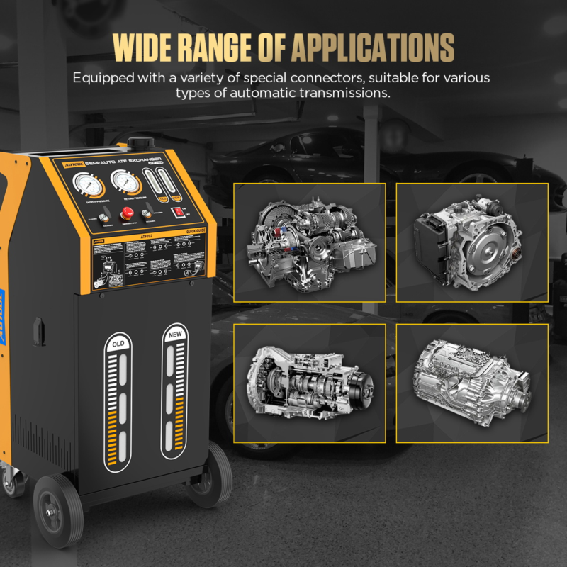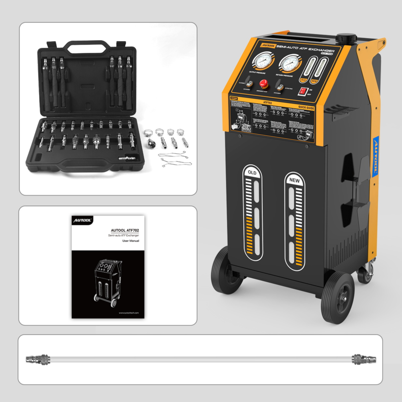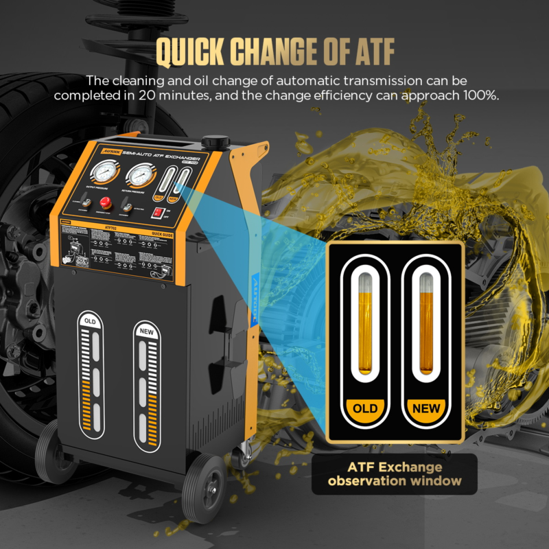 - Semi-automatic: The AUTOOL ATF702 automatic transmission fluid exchanger offers quick 20-minute oil changes. It features cycle cleaning for all transmission types and clear visual displays for oil pressure and temperature. Additionally, it has adjustable electric pressure for different models.
