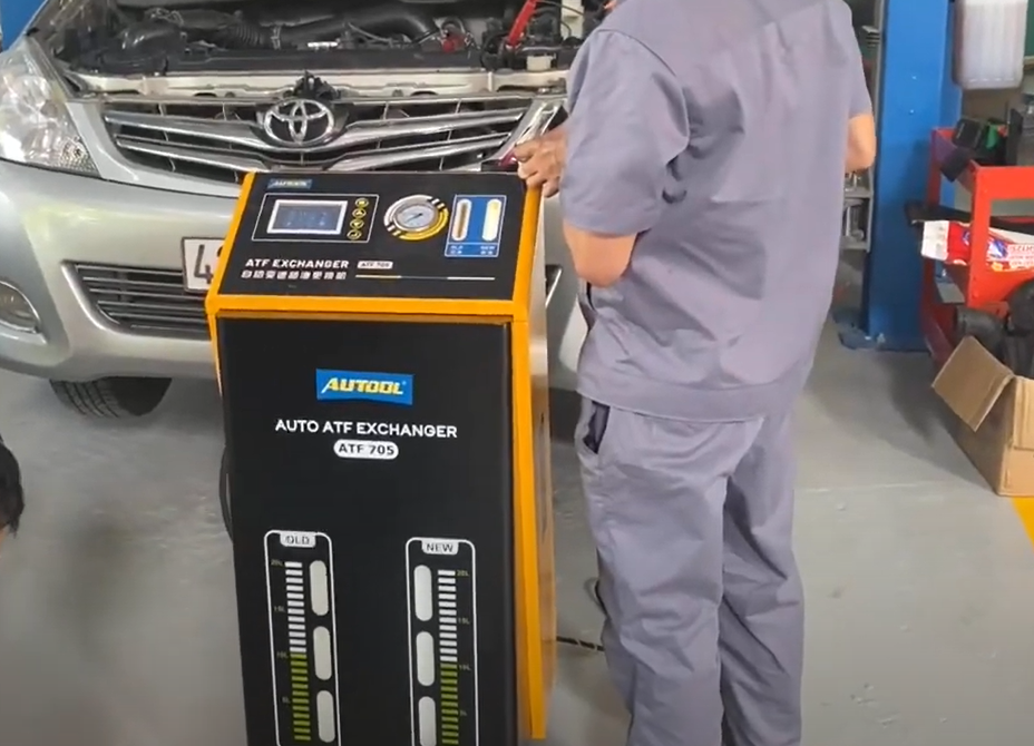 - The AUTOOL automatic transmission fluid exchange adopts the latest process design in the world. The system combines the circulating cooling pressure of the automatic transmission oil with the output pressure of the AUTOOL automatic transmission fluid exchange system to inject new oil into the automatic transmission while removing the old oil. This synchronous circulating oil change mode ensures safe and efficient oil changes and allows for thorough maintenance of the transmission.