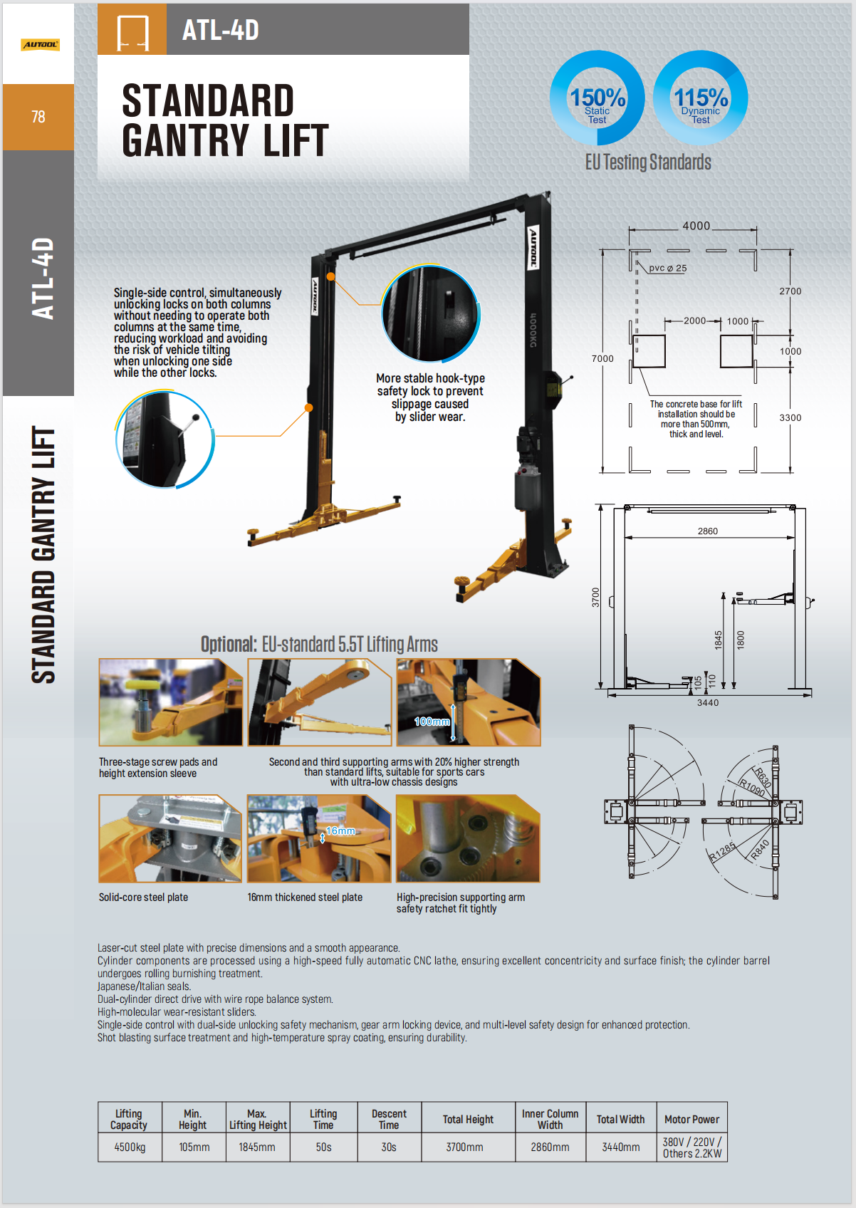 AUTOOL ATL-4D Two Post Car Lift 4000KG Load Capacity