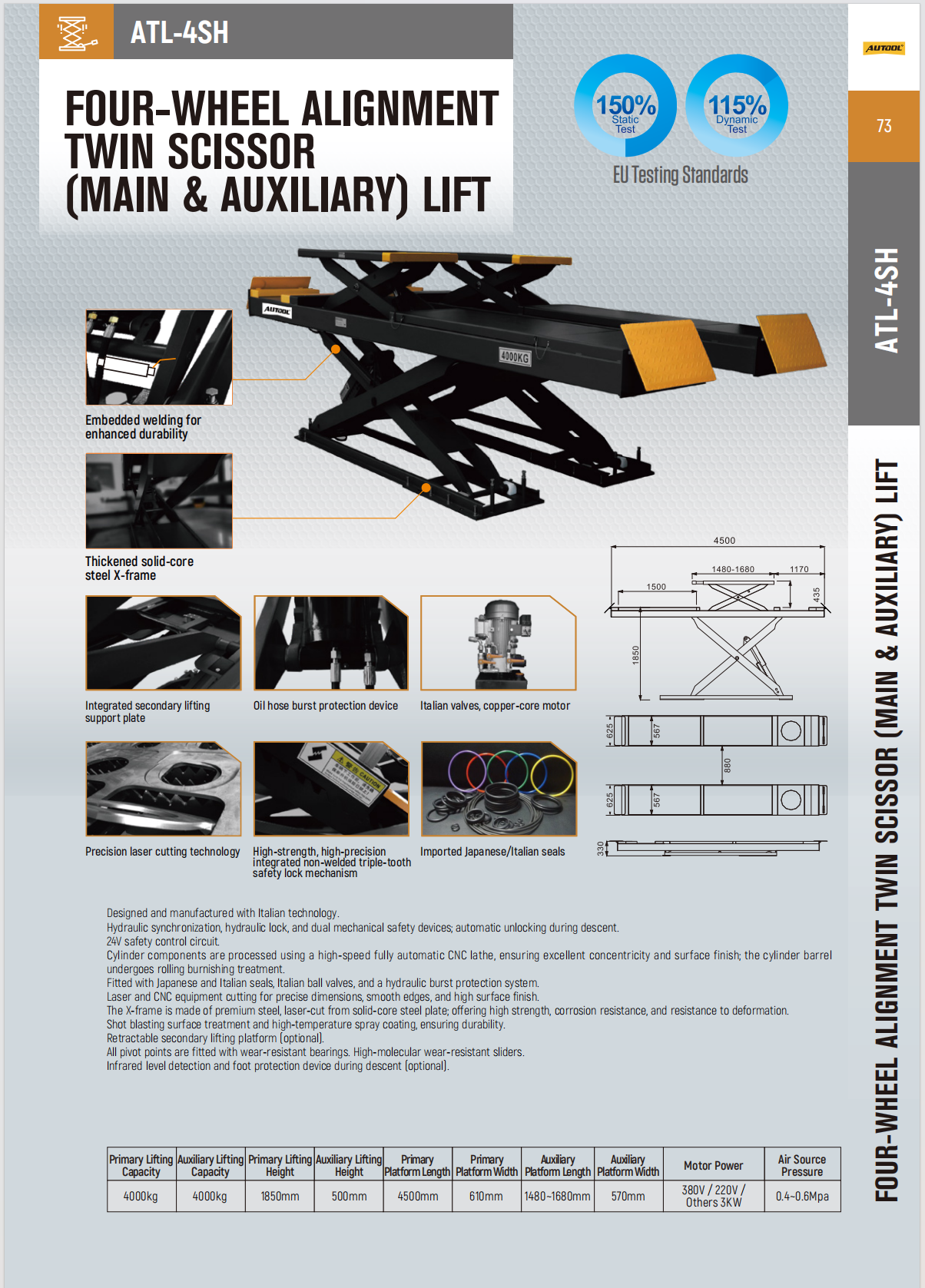 AUTOOL ATL-4SH Four-wheel Alignment Twin Scissor Car Lift