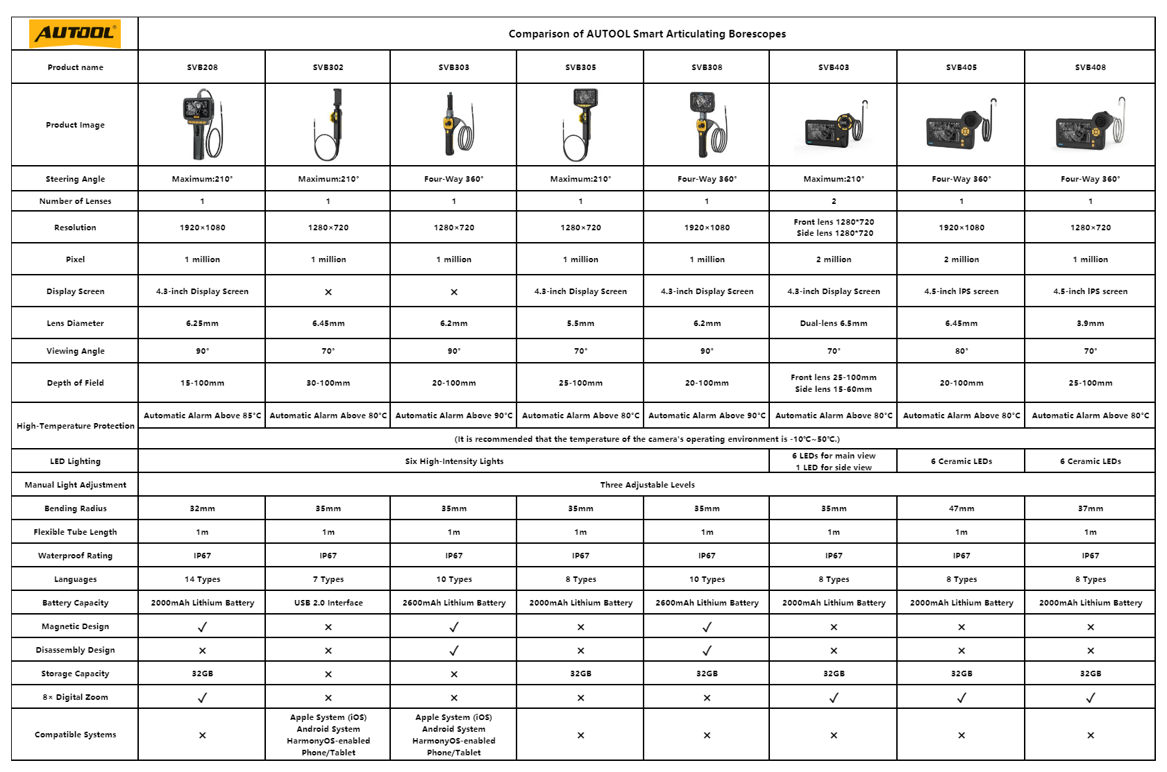 AUTOOL Automotive Inspection Camera Comparison