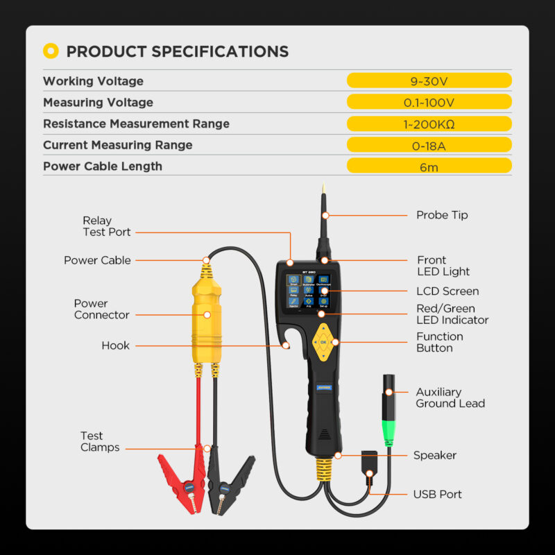 AUTOOL BT280 Electrical Circuit Tester Power Probe Electric System Tester