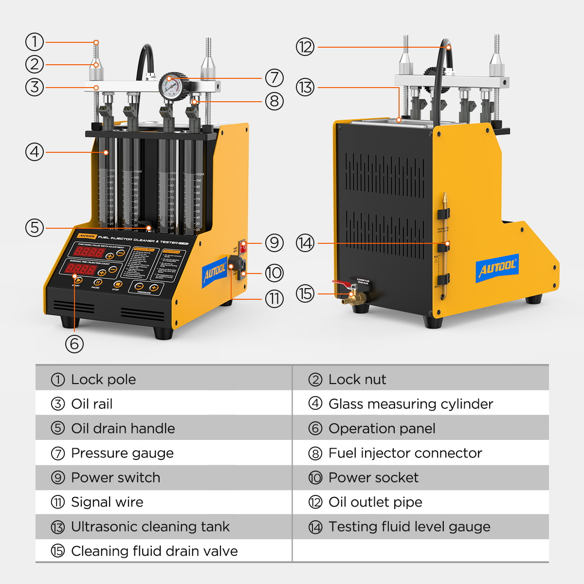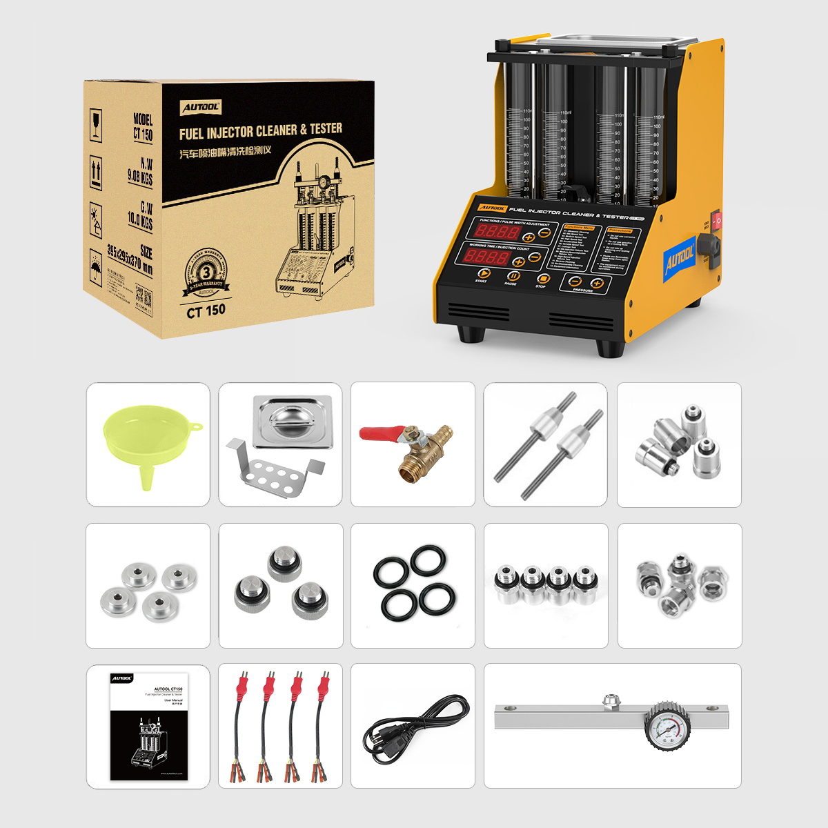 AUTOOL CT150 Fuel Injector Tester & Cleaner Machine is a professional 4-cylinder auto fuel injector testing and cleaning machine. It will help us clean and test the injectors of gasoline cars and motorcycles.