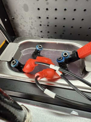 - Step 4: Performing leak test, spray pattern, and flow rate testing on the flow bench. The injectors are now returned to the flow bench for retesting of all functions.