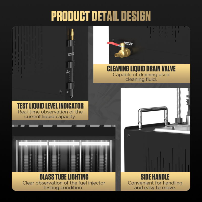 - 2000ML Cleaning Tank: Provides thorough ultrasonic cleaning for longer GDI and other injectors.