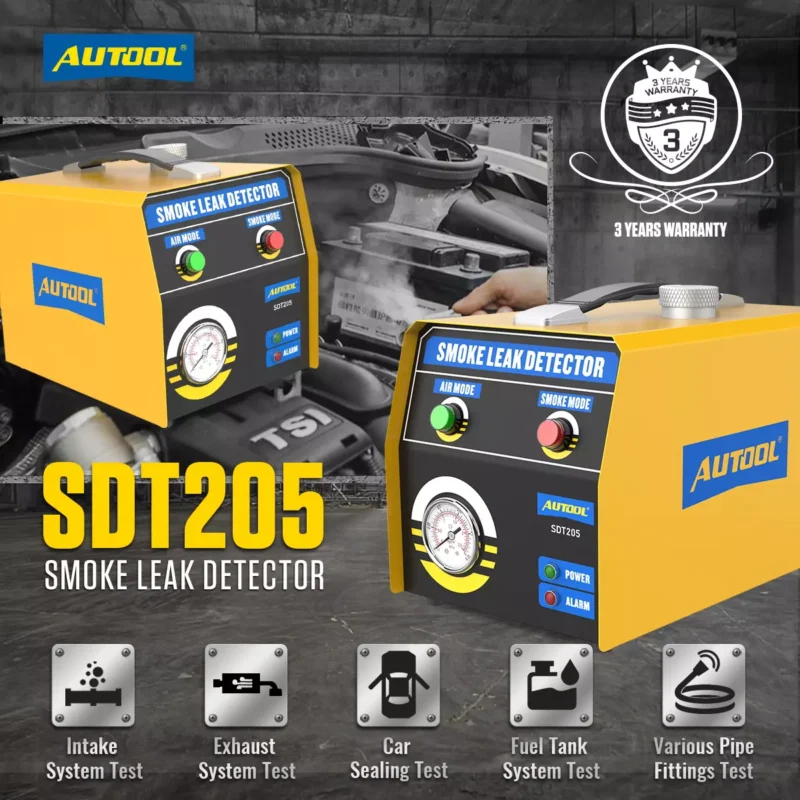 The AUTOOL SDT smoke machine for vacuum leaks is a professional diagnostic tool designed to accurately locate leaks in automotive systems, including intake and exhaust pipes, fuel lines, turbochargers, and EVAP systems. By producing a thick, visible smoke, it makes even the tiniest leaks easy to spot, eliminating the guesswork of traditional methods. Compared to time-consuming disassembly or blind troubleshooting, smoke testing offers fast and precise results, improving repair efficiency.
