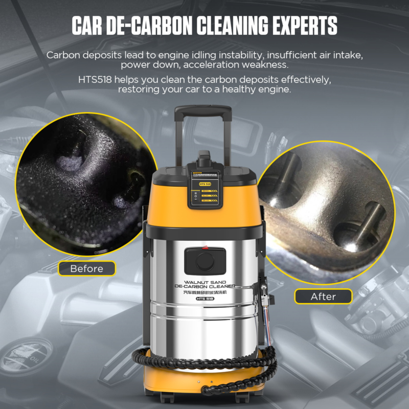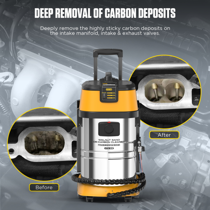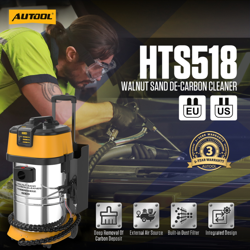 - That is why we need the AUTOOL HTS518 walnut blaster to clean the carbon deposition in the intake pipe. AUTOOL HTS518 cleans one intake pipe each time, and the 6-cylinder engine should cleaned 6 times one by one(and so on).