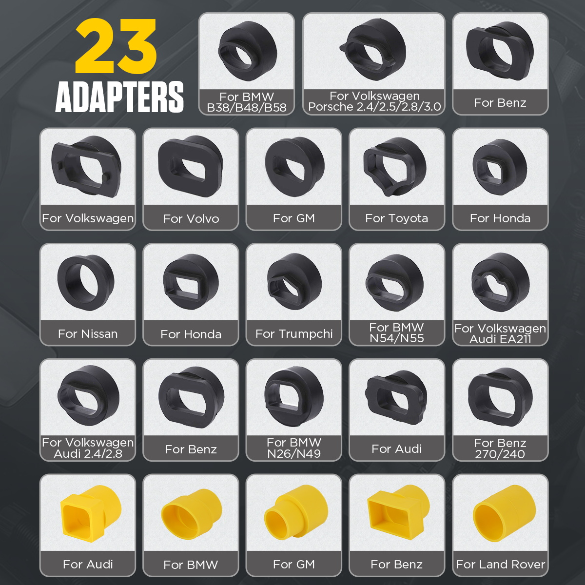 - Widely Applicable: Equipped with 23 kinds of adapters, suitable for a variety of models, such as BMW, Volkswagen, Mercedes-Benz, GM, and VOLVO.NISSAN and so on.