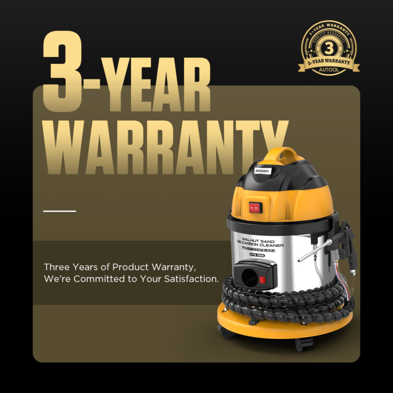 The AUTOOL HTS678 intake valve walnut blaster features a rated power of 1500W and is equipped with a high-efficiency particulate air (HEPA) filter, ensuring a cleaner working environment. It model incorporates a three-section telescoping handle design for ease of operation and mobility, and offers two operating modes—Standard Mode and Expert Mode—to accommodate different user needs. Pressure regulation is conveniently controlled via a dedicated knob, and the machine is fitted with a pressure gauge to monitor operational safety.
