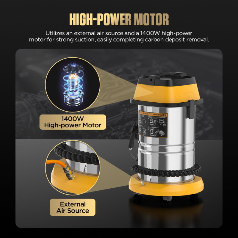 • High-Power Motor: The unit features a powerful 1400W high-performance motor combined with an external air source to create strong synchronized suction.