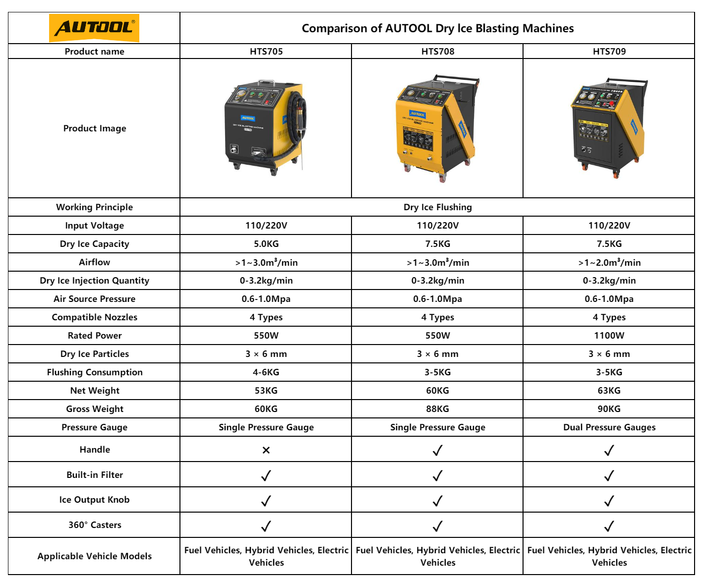AUTOOL HTS705 vs. HTS708 vs. HTS709 Dry Ice Blasting Machine Differences?