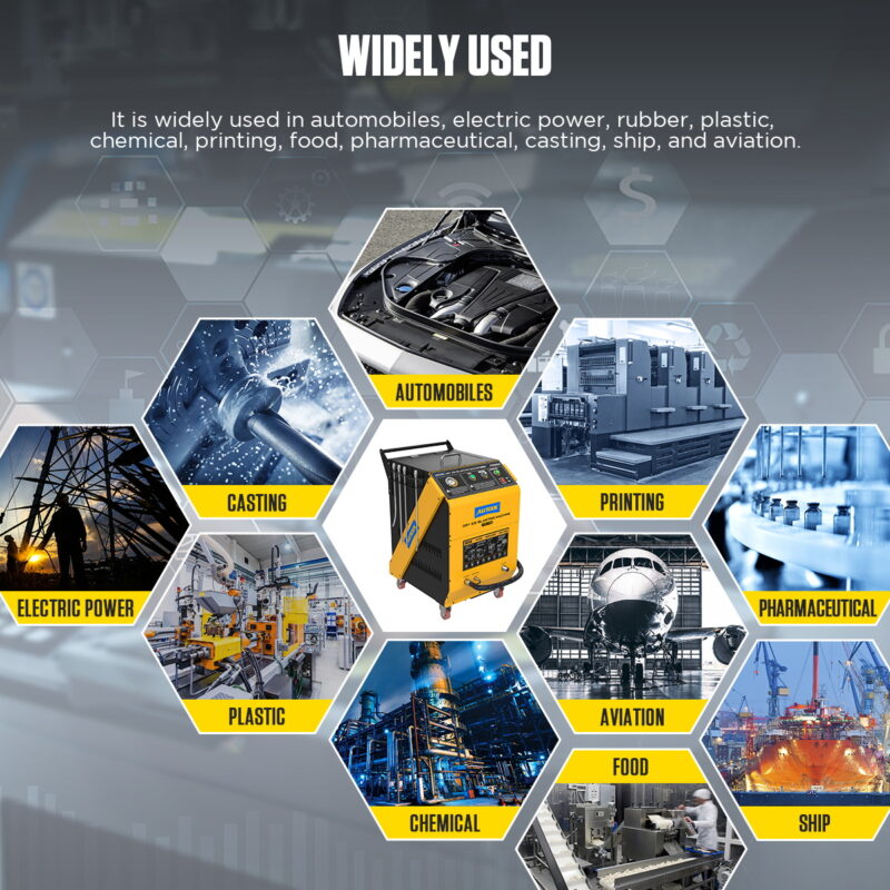 - Wide Application Range: Various industries, such as rubber, casting, automobiles, ships, electric power, chemicals, printing, plastics, food, pharmaceuticals, and aviation, widely use AUTOOL HTS708 dry ice cleaning machines.