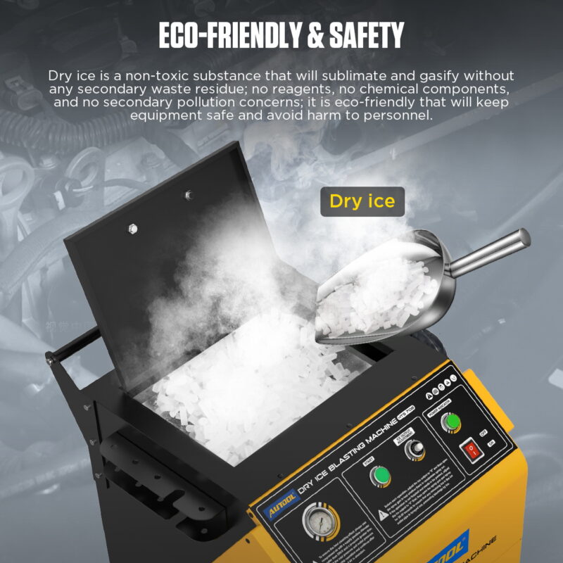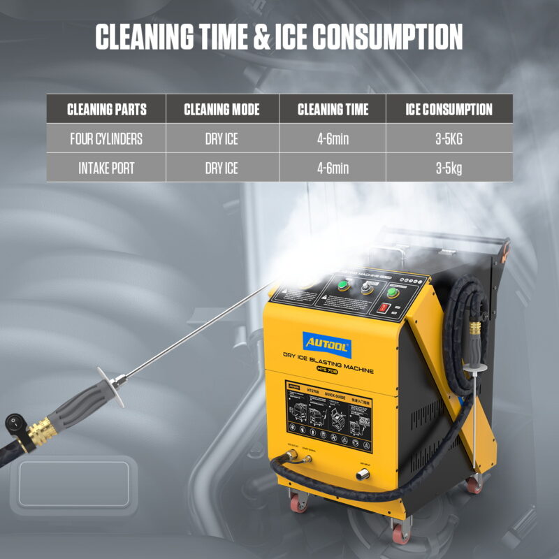 - Good Helper for Automotive Technicians: A dry ice cleaning machine can fully clean the carbon deposits in all parts(such as throttle valve,intake valve,engine component, cylinder combustion chamber, wheel hub, etc.) of the car without disassembling the cleaning parts. This effectively reduces the cleaning time and greatly improves efficiency.