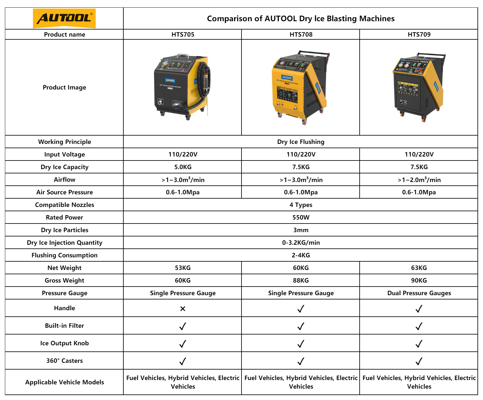 AUTOOL HTS705 vs. HTS708 vs. HTS709 Dry Ice Blasting Machine Differences?