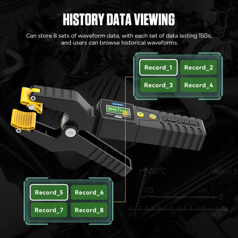 - View Historical Data: Stores eight sets of data, with each set capable of storing data for up to 150 seconds.
