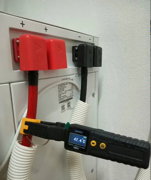 A clamp-type thermometer can be used to measure the surface temperature of refrigerant pipes. It works well, has a nice color display, and can be adjusted to save operating parameters.