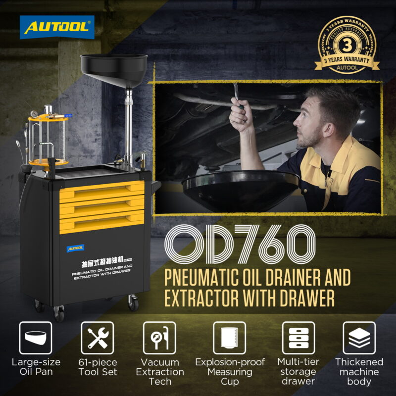 You can choose the OD760 pneumatic oil extractor, which features three drawers for storing your tools.