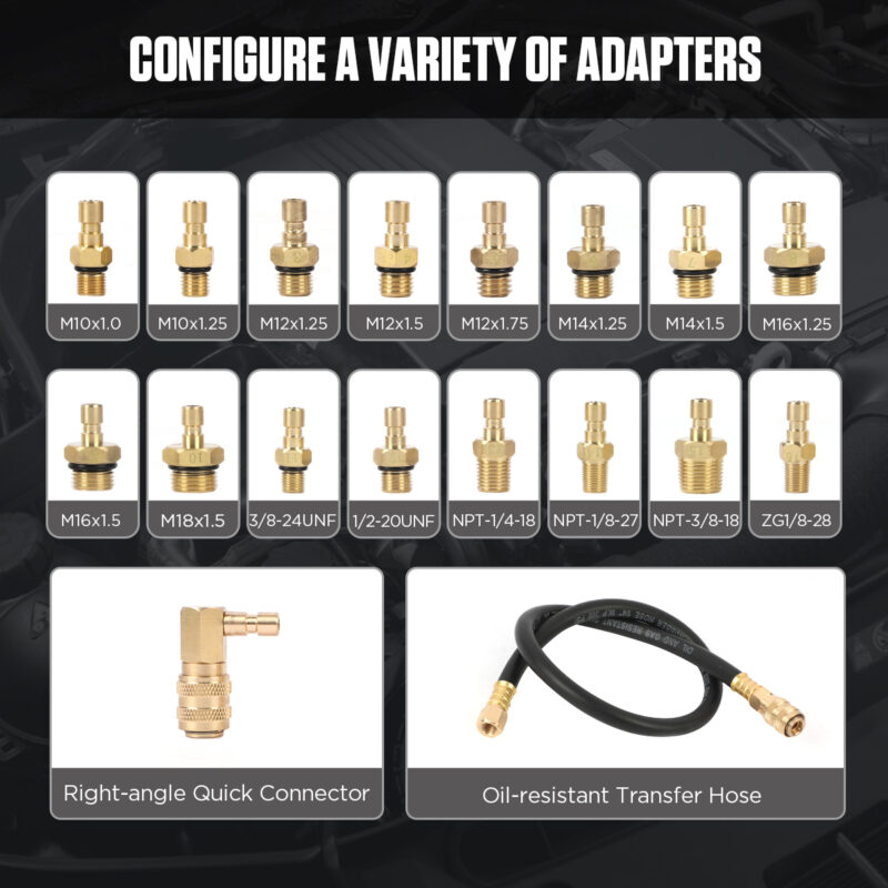 - Data Saving: Data saving and interface lockout features save up to 6 sets of test data. In the process of use, you can conveniently record and query the sender engine oil test data. The pressure tester equips a quick-release valve button for quick pressure release.