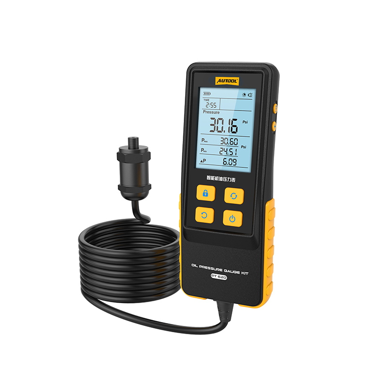 AUTOOL PT620 Engine oil pressure gauge is one of the latest automotive intelligent pressure detection series products launched by Accidental Technology, which is mainly used to detect the oil pressure of the engine, using a digital measurement system, and the detection sensitivity is extremely high. The ability to display the oil pressure in real-time and intuitively makes oil pressure detection easy and smooth.