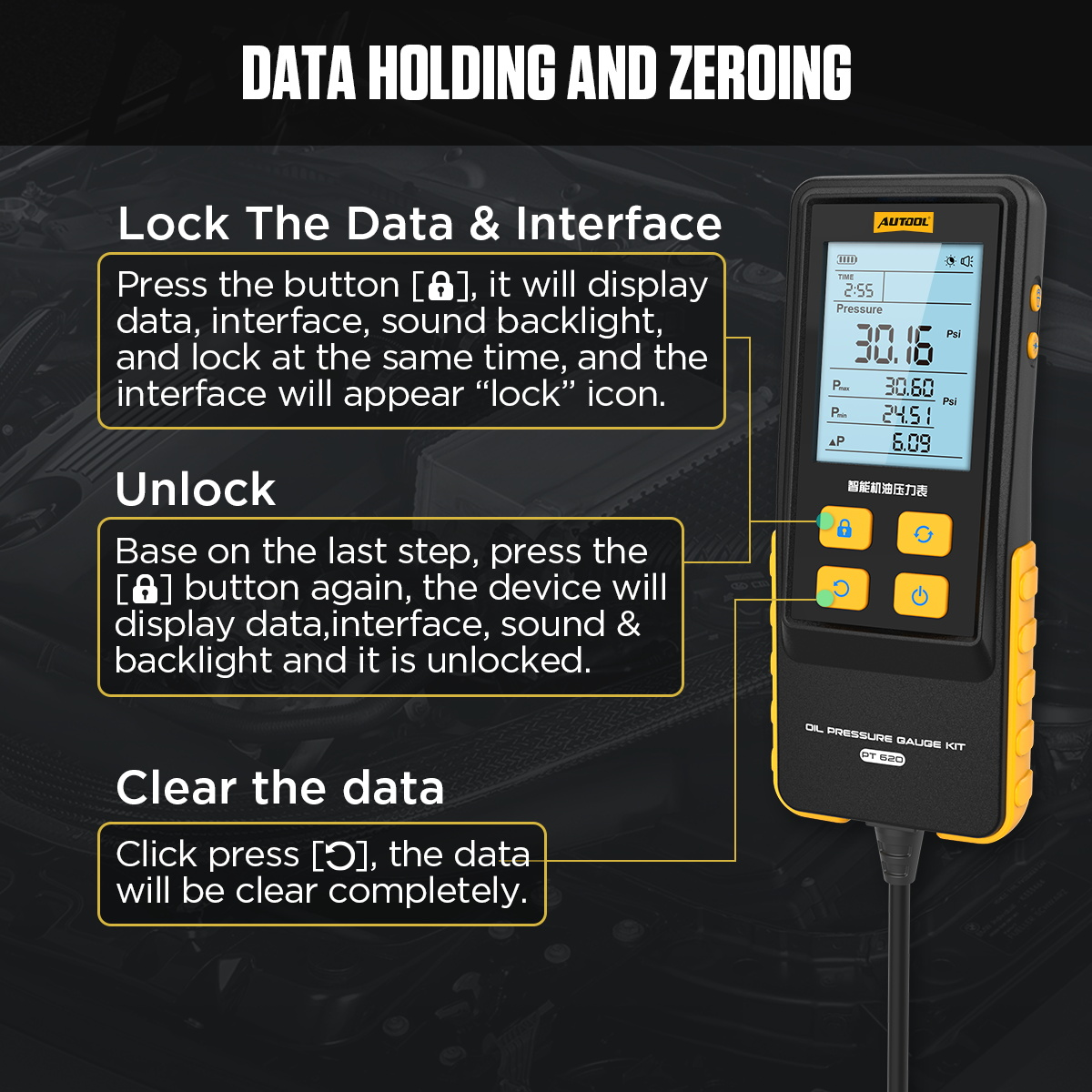 AUTOOL PT620 Oil Pressure Gauge Kit Features