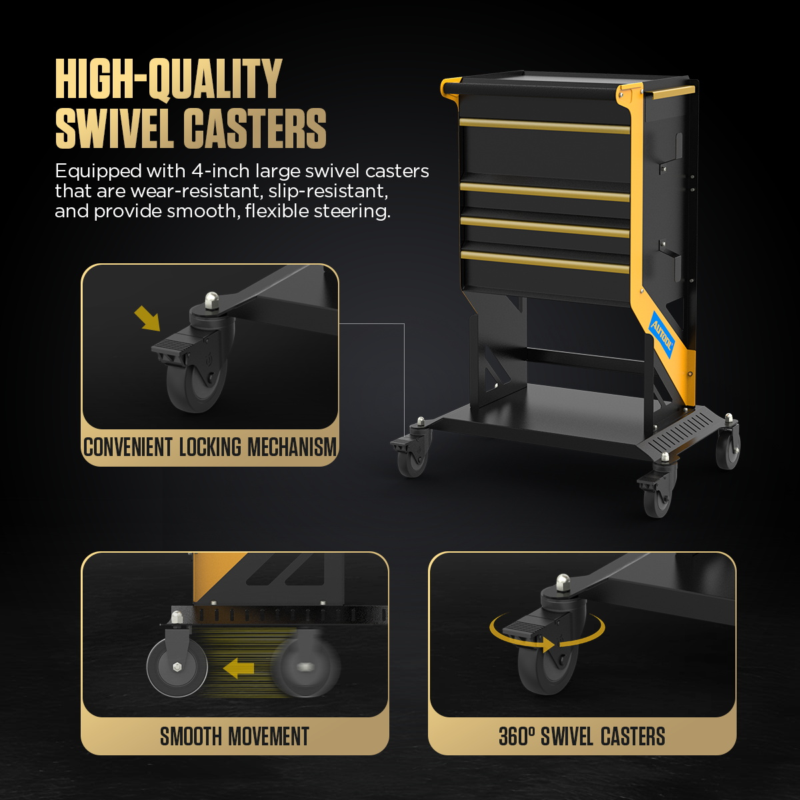 - 4-inch Large Universal Wheels: Four 4-inch casters with brakes swivel 360° for smooth movement.
