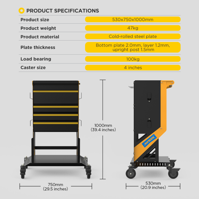 - Multiple Settings: The tool box cart is suitable for garages, workshops, warehouses and repair stores.
