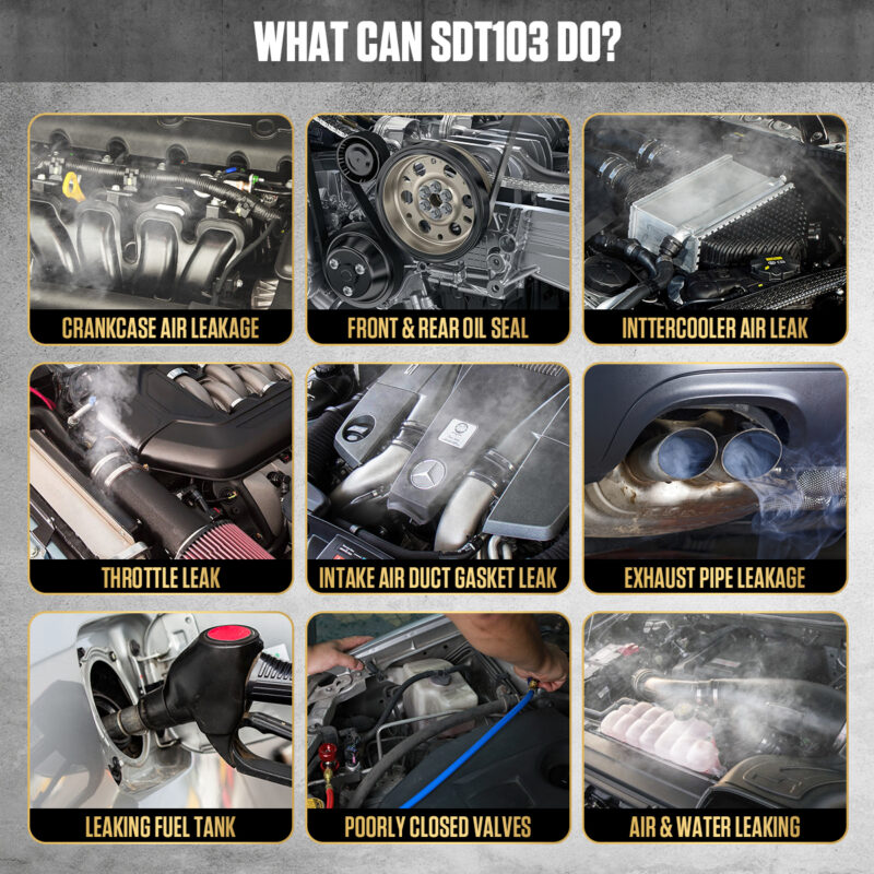 - Wide Range of Applications: The AUTOOL SDT103 Smoke Leak Detector is suitable for detecting leaks in automobiles, motorcycles, snowmobiles, ATVs, ATVs, light trucks, and speed boats, suitable for all models(only for 12V DC).