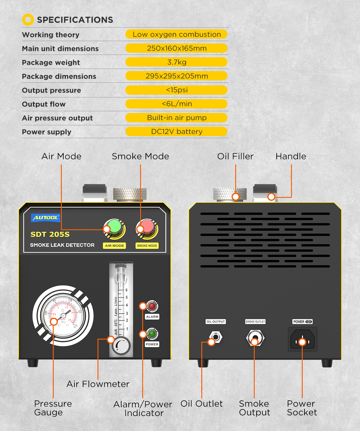 AUTOOL SDT205S Automotive Smoke Tester Features: