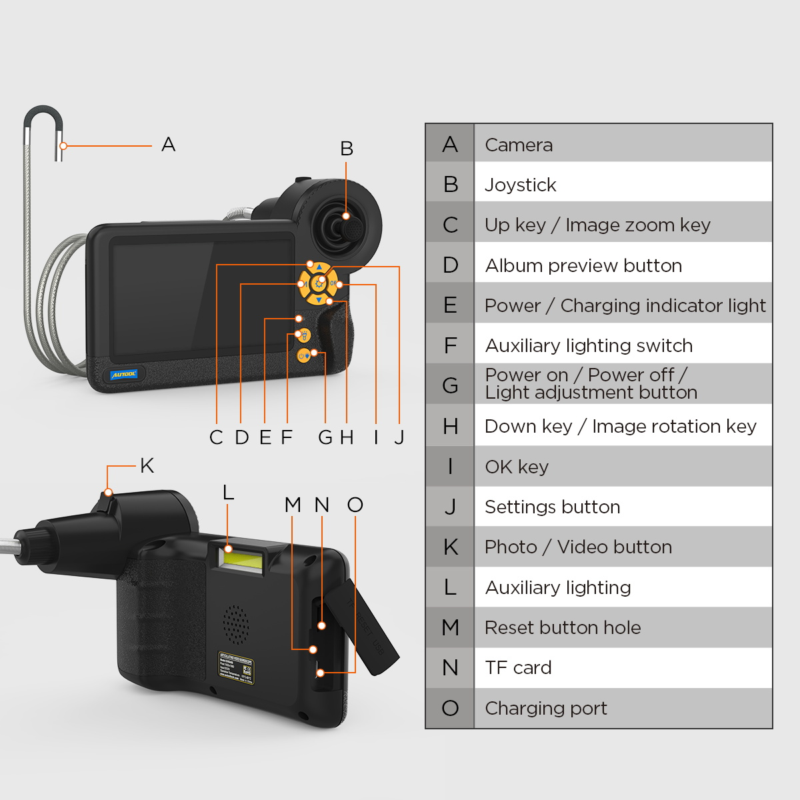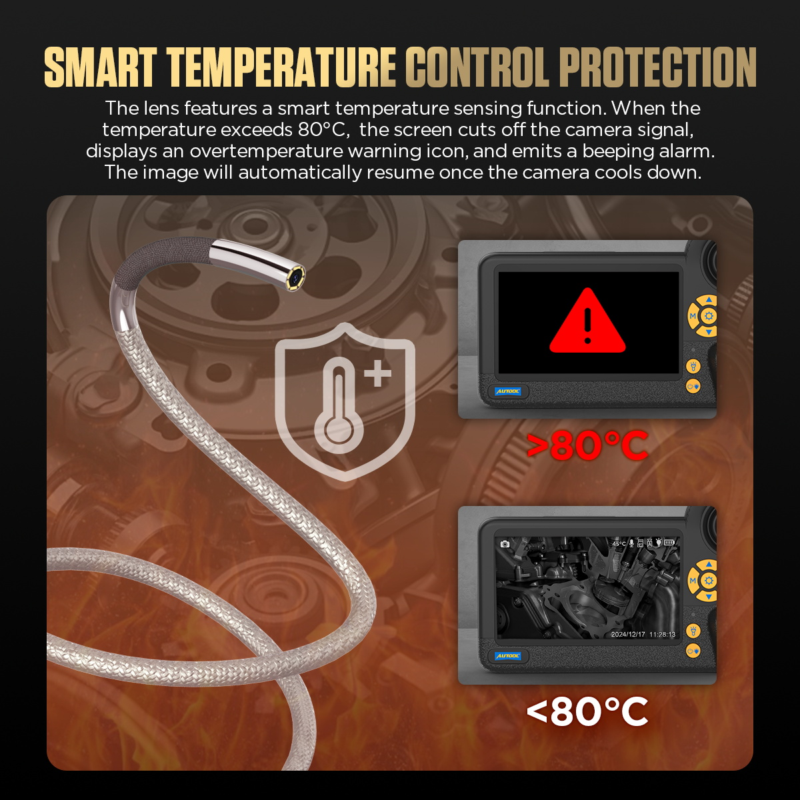 - To protect the endoscope, please avoid using it when the car has just stopped or the engine is hot. When the engine has just stopped, its temperature usually reaches 80°C to 100°C or even higher. High temperatures can damage the camera