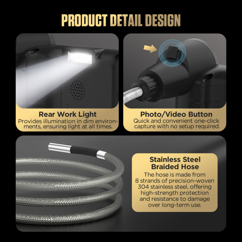 - 3.9mm Lens Diameter: Ultra-small lens design easily enters engine gaps, pipes, and other narrow spaces for flexible and convenient operation.