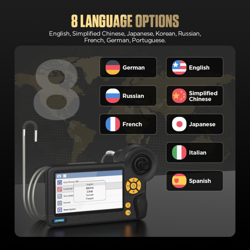 - Supports 8 Languages: English, Simplified Chinese, Japanese, Korean, Russian, French, German, Portuguese.