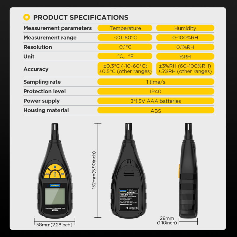 AUTOOL TM101 Thermo-Hvgrometer Temperature and Humidity Sensor