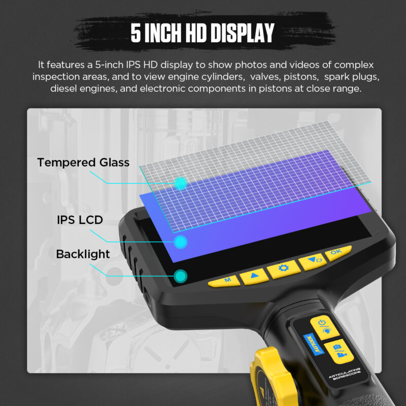 One-Click Photo and Video Capture: The1080P HD camera can reach into narrow spaces and clearly display videos and images on the 5-inch display.
