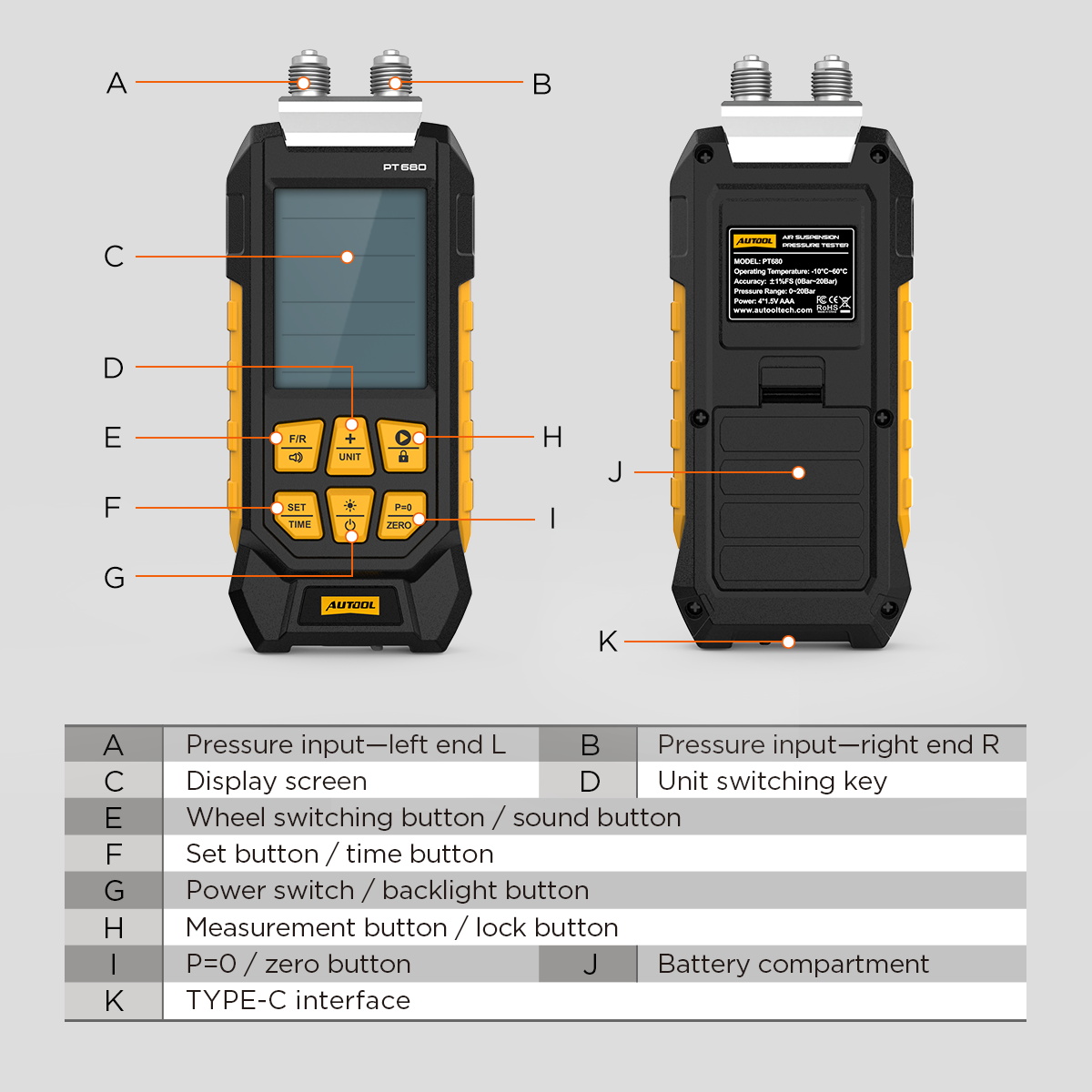 AUTOOL PT680 Air Suspension Pressure Tester