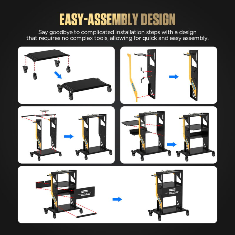 - Easy to Install: This detailed rolling use cart has a simple installation procedure that you can follow the instructions to install yourself. Simply follow the instructions and use the screws to assemble the individual panels.